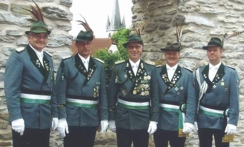 13. Juli 1958: Beim Vogelschießen wird wieder mit dem Gewehr um die Königswürde geschossen. Zuvor, von 1949 bis 1957, wurde die Armbrust benutzt. Ein Grund waren die britischen Einschränkungen. Der Verein ist aber in den ersten Jahren nach dem Krieg aus finanziellen Gründen nicht in der Lage, den Schießstand wieder instand zu setzen. Auch die Patronen sind dem Verein mit 15 Pfennig pro Stück zu kostspielig.